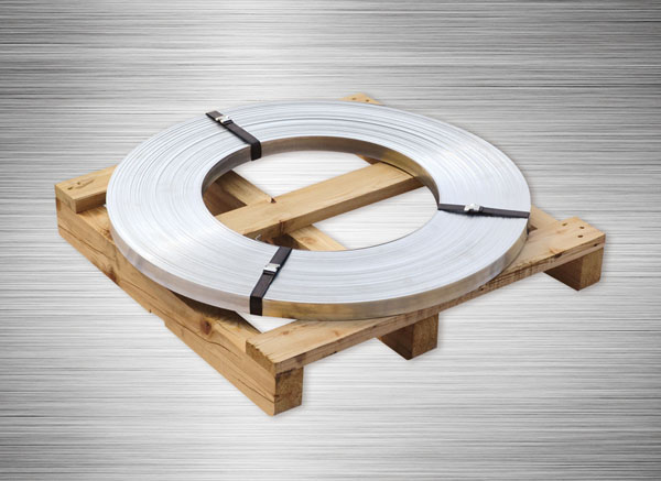 采用公司自主研制的低合金中強度系列包裝鋼帶專用鋼種和工藝,制造出具有較高拉緊力和韌性的包裝用鋼帶。因其優(yōu)秀的防腐性能,廣泛應用于有色金屬行業(yè)。